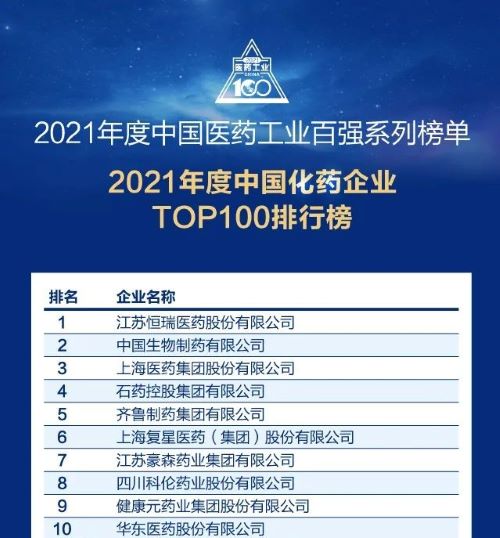 7月12日晚,正在举行的2022米思会(中国医药健康产业共生大会)上,发布了“2021年度中国医药工业百强系列榜单”。J9九游会医药以扎实的创新研发实力和稳健的市场运营能力,再次蝉联“中国化药企业TOP100排行榜”榜首。